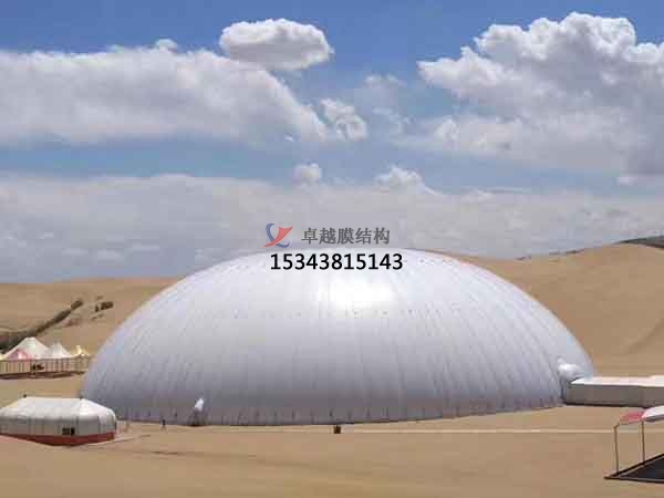 該氣膜基礎(chǔ)結(jié)構(gòu)為鋼筋混凝土基礎(chǔ),維護(hù)結(jié)構(gòu)和頂部由內(nèi)外膜材及保溫材料組成。周邊膜體直接與地梁連接。采用連續(xù)性供風(fēng)方式,向膜體覆蓋的面積內(nèi)充氣,利用室內(nèi)外壓力差,使膜結(jié)構(gòu)膨脹之后形成穩(wěn)定的空氣支撐結(jié)構(gòu)。內(nèi)部無任何框架或梁柱支撐。充氣膜結(jié)構(gòu)建筑配有先進(jìn)的自動(dòng)控制系統(tǒng),主供風(fēng)機(jī)組為1-2臺(tái)風(fēng)機(jī),一臺(tái)發(fā)電機(jī),停電時(shí)能自動(dòng)啟動(dòng)的發(fā)電機(jī),保障正常供風(fēng)和安全照明。