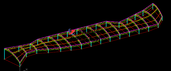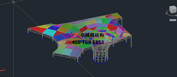 膜結構設計時,應在滿足膜面應力平衡狀態(tài)的條件下,使結構體系保持穩(wěn)定。還應考慮使用階段局部膜片破壞或局部索退出工作,以及對不同部位膜單元進行二次張拉或更換對整體結構的影響。