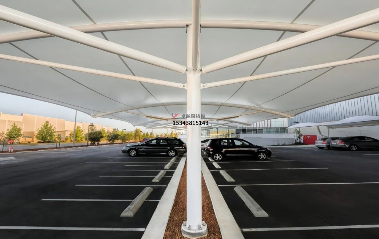 傳統(tǒng)的停車車棚一般需要固定的柱子和梁,占用很大的空間。而膜結(jié)構(gòu)停車棚不需要太多的支撐點,可以實現(xiàn)跨度大、空間利用率高的設(shè)計,可以給停車場更多的空間,為用戶提供更多停車選擇。